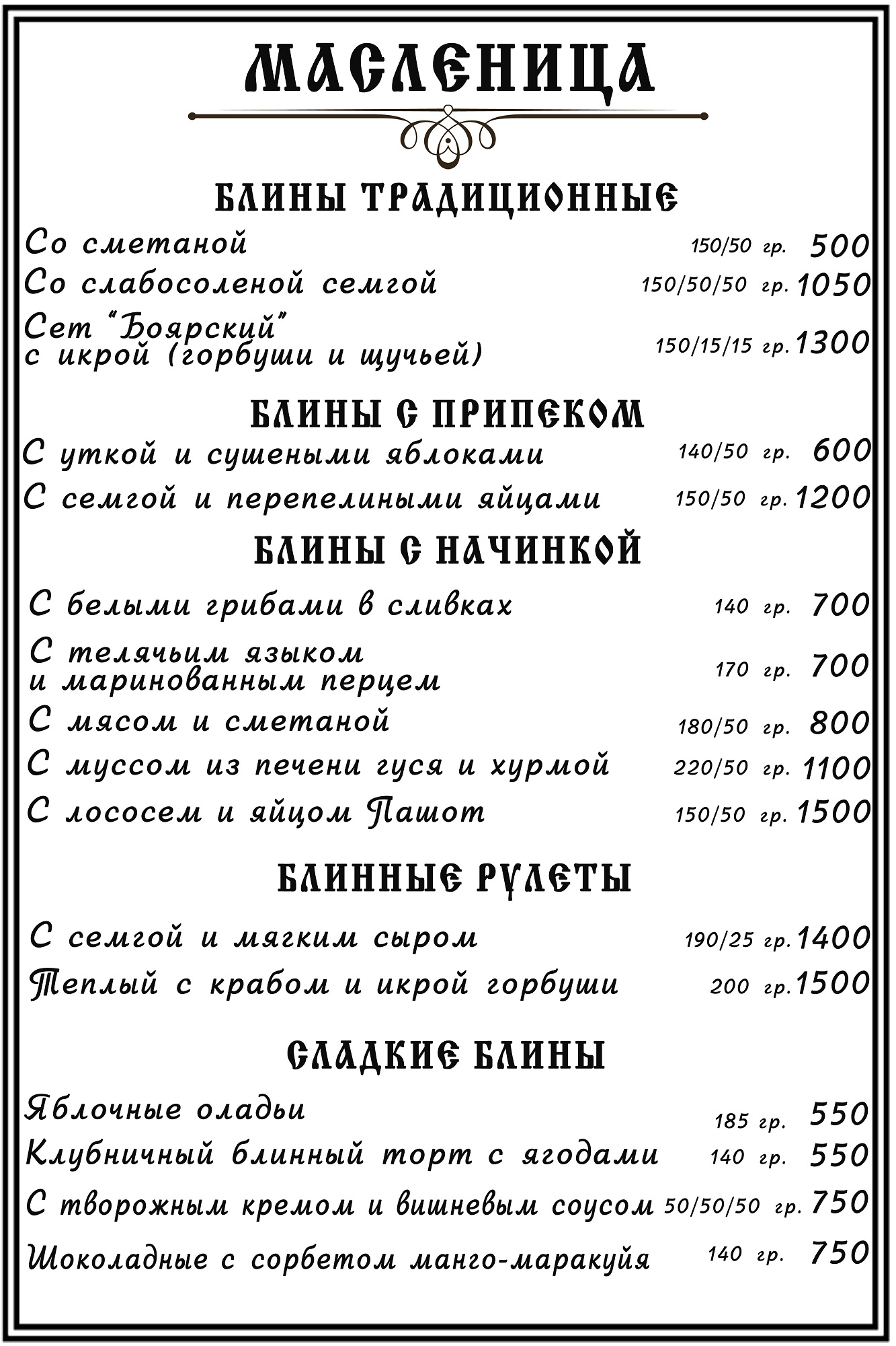 - Традиционные блины — со сметаной, икрой, вареньем, медом и сгущенкой. Настоящая ностальгия по бабушкиным рецептам!